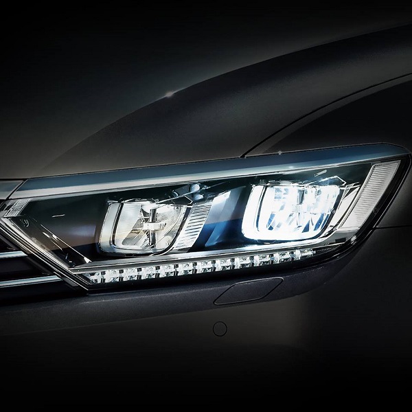 有別前一世代,全新Passat在外觀上展現出優雅前衛的科技風格,並且以福斯集團的創新MQB平台為基礎,打造長軸距、短前懸的修長動感比例,車身線條亦以銳利折線勾勒出充滿張力的運動感受;而大型四幅橫柵鍍鉻水箱護罩與箭矢型的銳利頭燈合而為一,同時透過下氣壩、環車鍍鉻飾條相互輝映,以大器豪華之姿引人注目。LED頭燈是全新Passat的迷人之處、並且透過銳利的LED日行燈展現科技氛圍;其可變式LED尾燈則採水平駐車、垂直剎車的樣式切換,更是視覺焦點,不論日、夜間皆具備了極佳辨識性,進而確保行車安全。